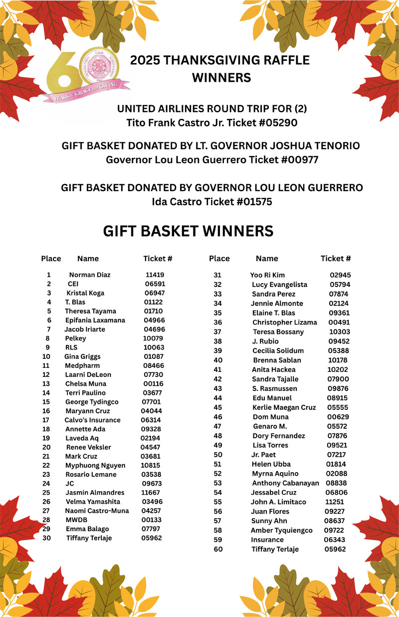 Thanksgiving Raffle fundraiser Events Event Date: Saturday, November 8, 2025 - 14:00 to 17:00 Post Date: 08/18/2025